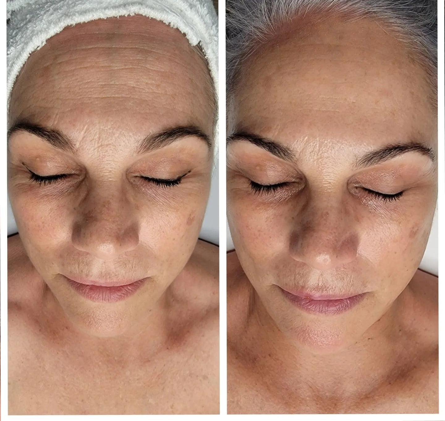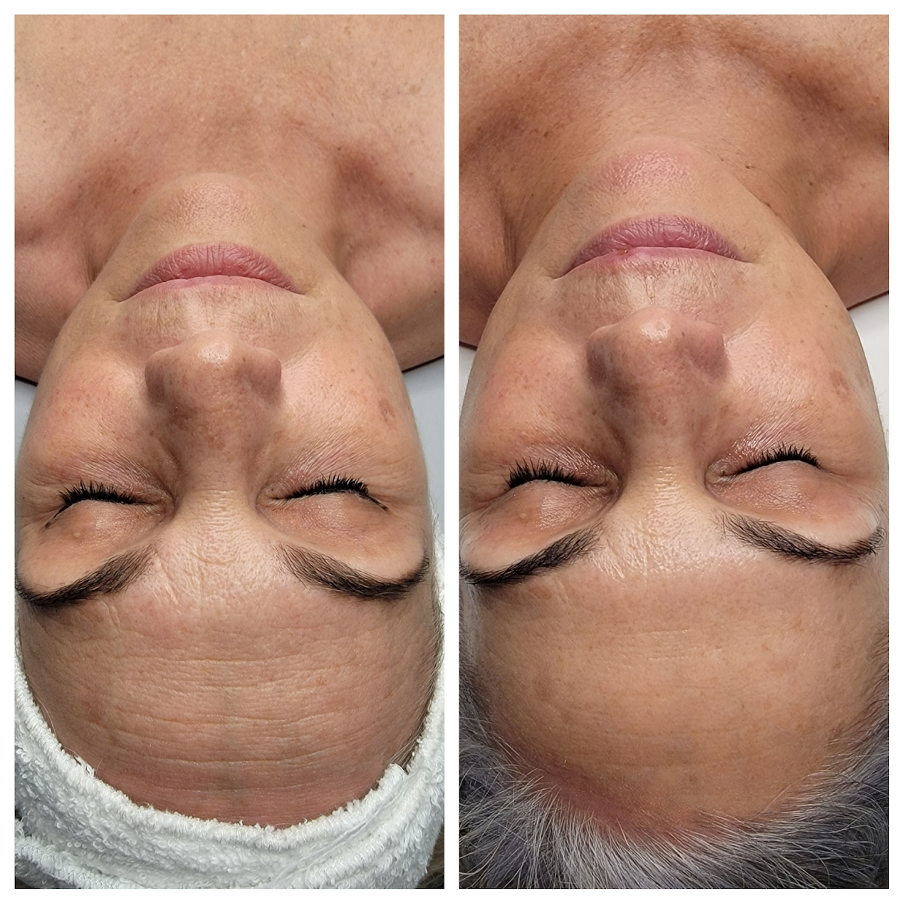 "This was my very first facial with an esthetician and I am SO incredibly pleased that it was with Desiree! She was recommended by a friend who drives almost 2 hours to see her, so I figured she must be good. Desiree is so knowledgeable, professional and warm. I was a little nervous not having had this type of work done before. From the moment I met Desiree and we began chatting about my concerns I was put right at ease. She has a very calming presence. I opted to have dermaplaning and the Sculptra Mask facial. What a relaxing experience! Desiree clearly explained all that she was doing BUT was quiet when no explanation was needed which I really appreciated. Nothing worse than trying to relax and someone continues to make small talk. This was such a soothing experience! While some of the products are working on the skin Desiree gives you a massage of head, neck, upper back area. Oh my goodness!!! Seriously THE BEST massage I've ever received!! I did not want it to end! I am so please with the results. My understanding with the Sculptra Facial is that the results are cumulative. After only one session, my skin looks so good. There is a subtle luminescence to my skin that seemed to peek a few days after the facial and that is still noticeable almost a week later! About Day 3 my partner and I went out to dinner. As I was talking I could tell he was looking at my face more intensely. He then remarked that my skin look really good! He isn't someone that typically buys into skincare treatments so this unsolicited remark was genuine and appreciated! I would highly recommend Desiree and am looking forward to future treatments."