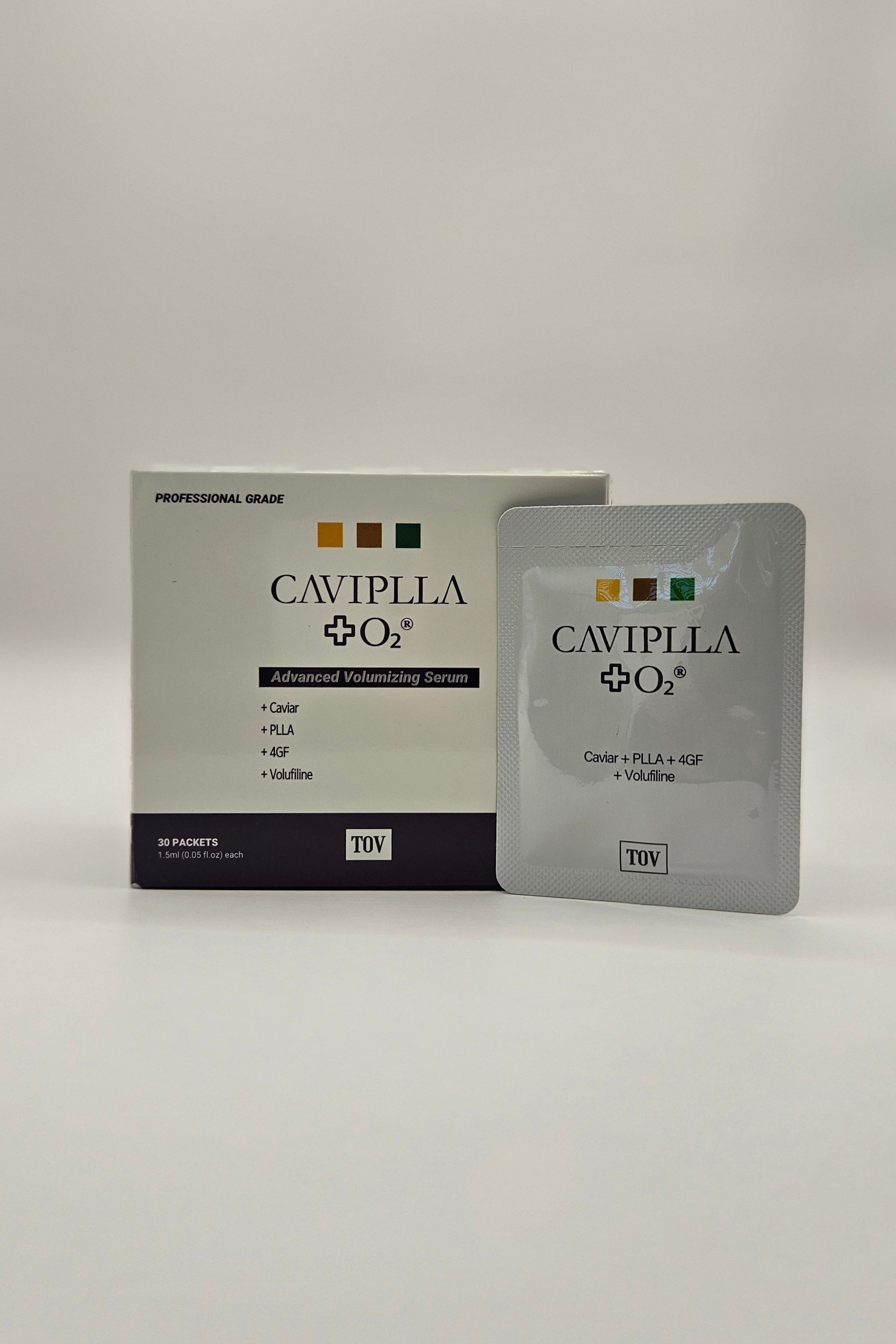 The one and only topical filler serum! Caviplla O2 travel size features a luxurious blend of premium ingredients, including Caviar Extract, Centella Asiatica Extract, and Poly-L-Lactic Acid, that deliver superior efficacy. This nourishing formula's essential peptides, ceramides, Niacinamide, and Rose Flower Water work together to regenerate and even out skin tone while providing deep hydration and a radiant glow.